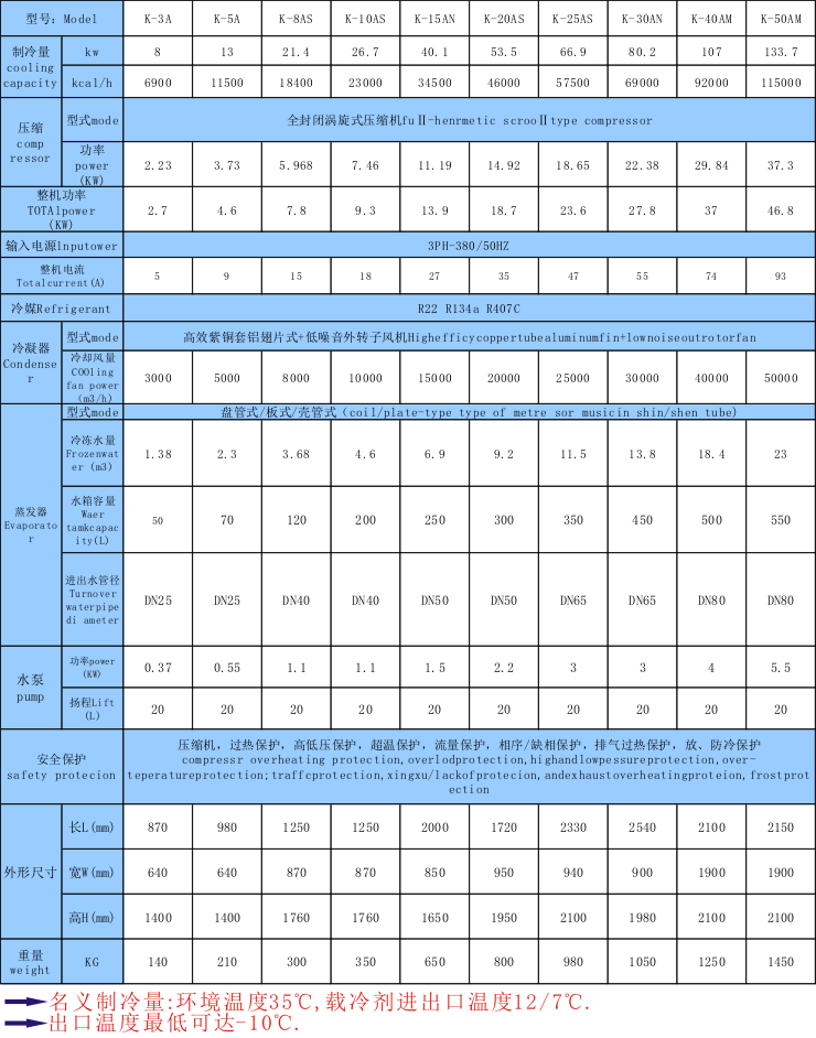 8.水冷及風(fēng)冷式規(guī)格齊全(功率:3HP-300HP,制冷量從600W至34800W)專(zhuān)門(mén)設(shè)有各行業(yè)機(jī)械設(shè)備配套之機(jī)型,可按客戶(hù)工藝要求制造。