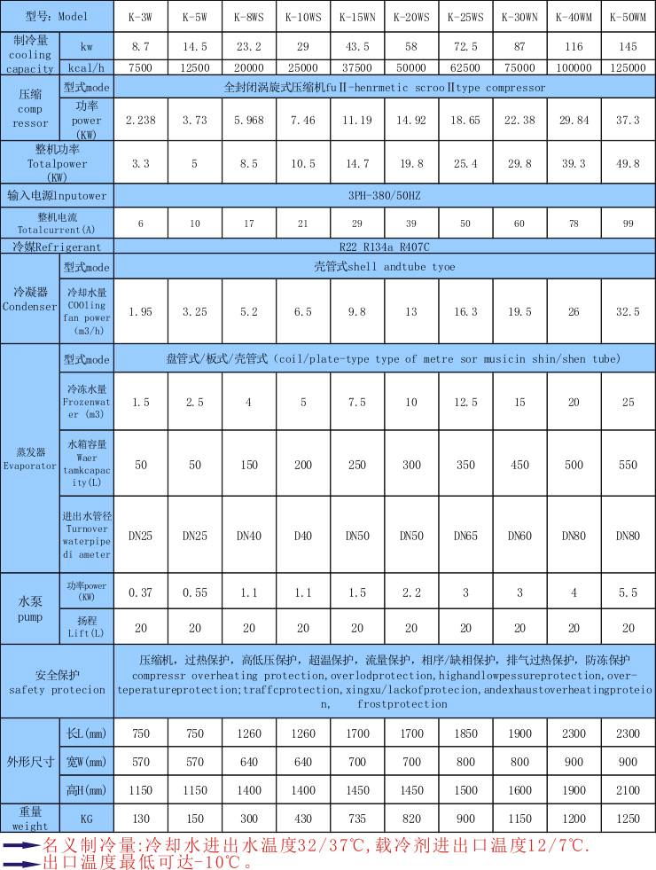 8.水冷及風冷式規格齊全(功率:3HP-300HP,制冷量從600W至34800W)專門設有適合各行業機械設備配套之機型,可按客戶要求工藝要求制造。
