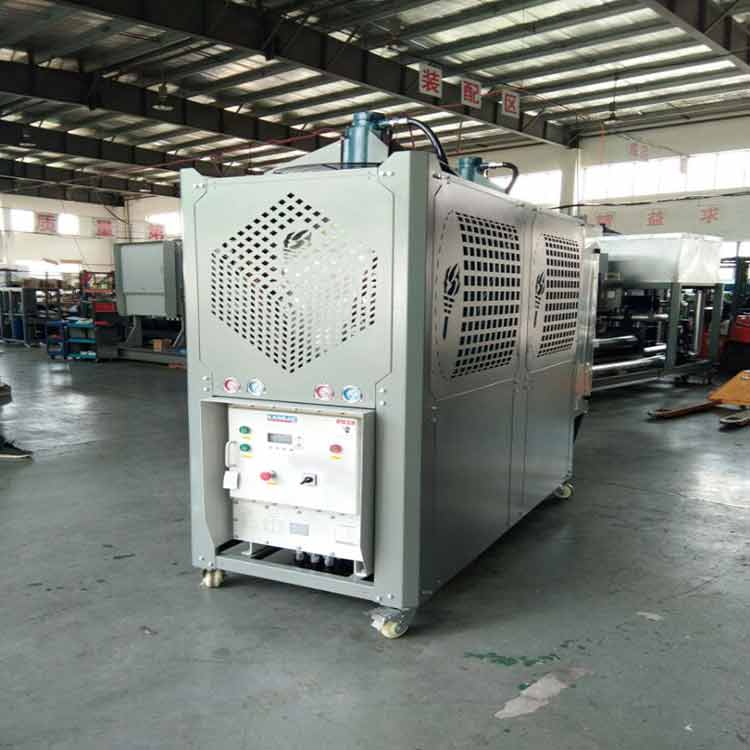 風冷式低溫制冷機日常維護應注意的問題:風冷式冷水機是集壓縮機、蒸發器、冷凝器、冷凍配件、散熱風扇、電控系統等為一體的工業制冷設備,它是利用風扇散熱,因此配套使用換熱性能高的翅片式冷凝器。風冷式低溫制冷機運用冷熱交換的原理進行冷卻,可快速降溫,溫控穩定,且不受環境因素的影響,是現代工業中不可或缺的配置設備。